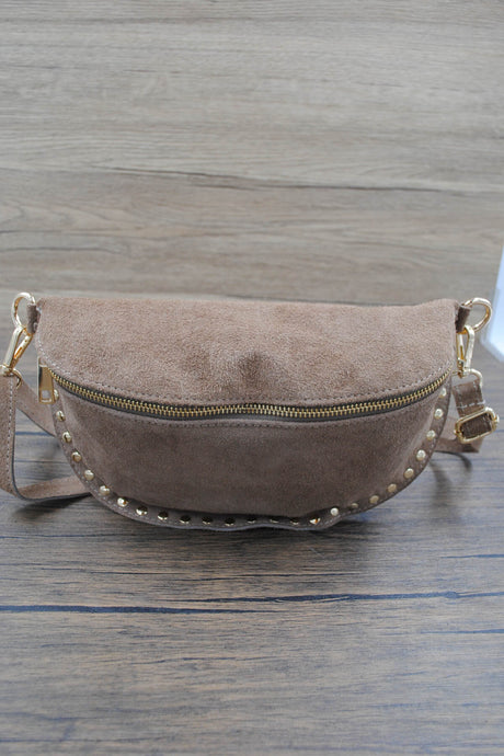 Suede Studded Sling Bag Taupe