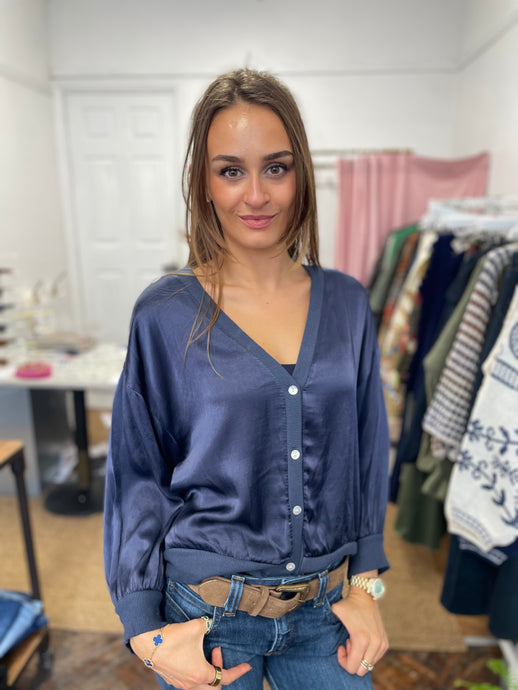 Nola Frill Collar Needle Corduroy Shirt Navy
