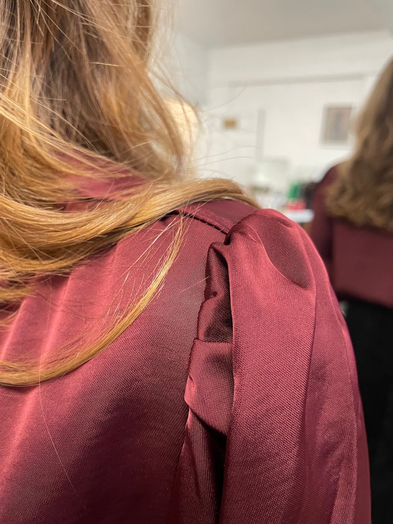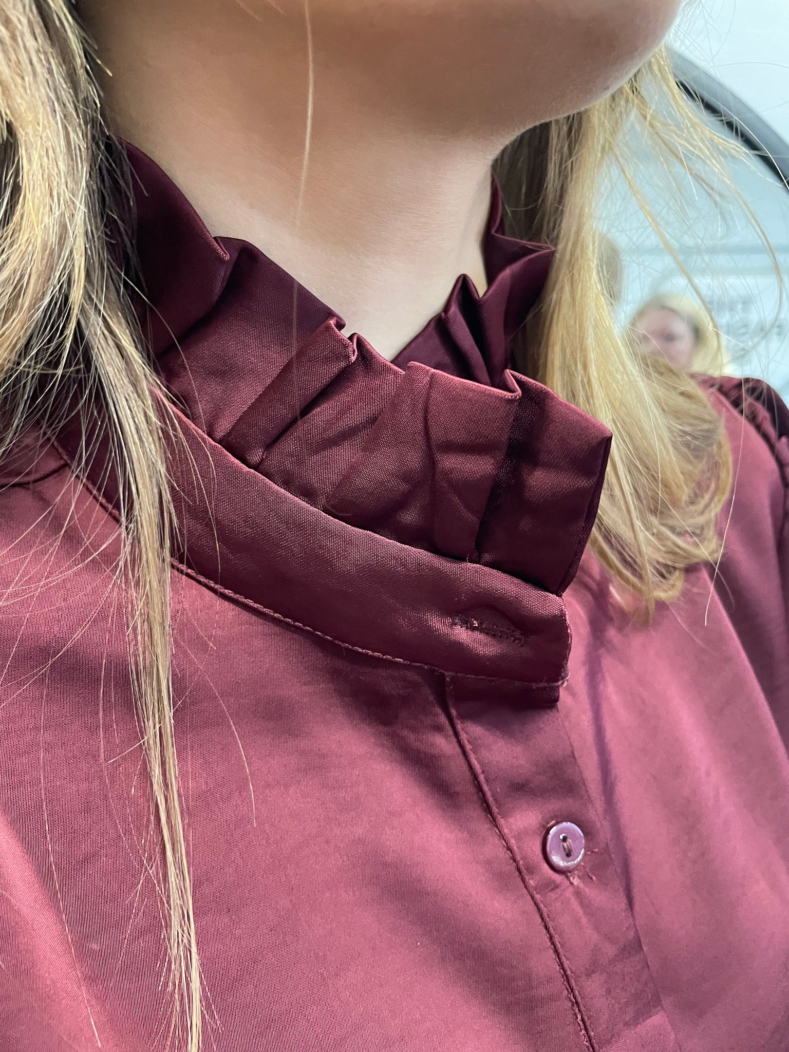 Sadie Satin Ruffle Collar Shirt Burgandy
