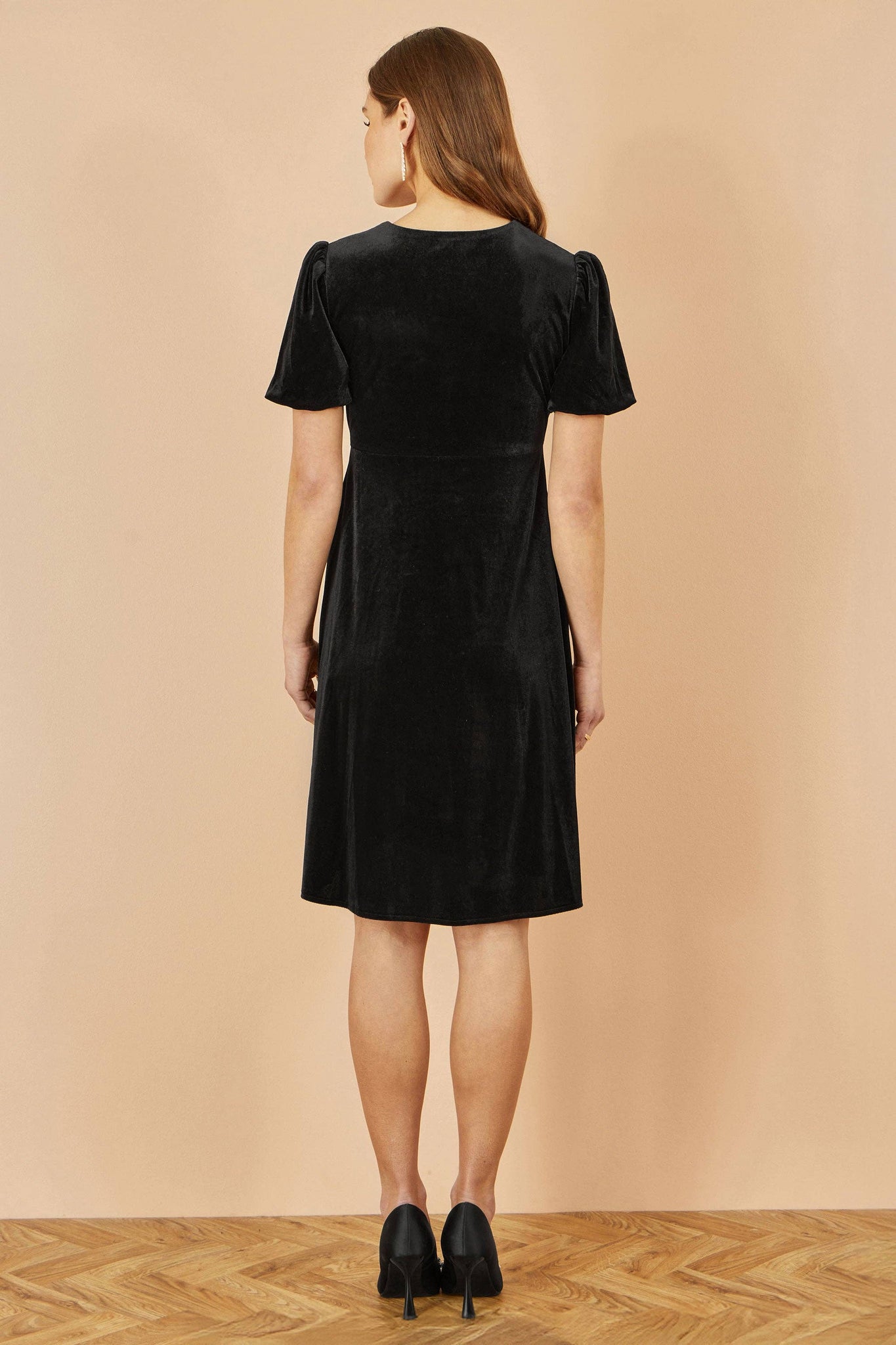Velvet Skater Dress With Diamante Bow Detail -Black