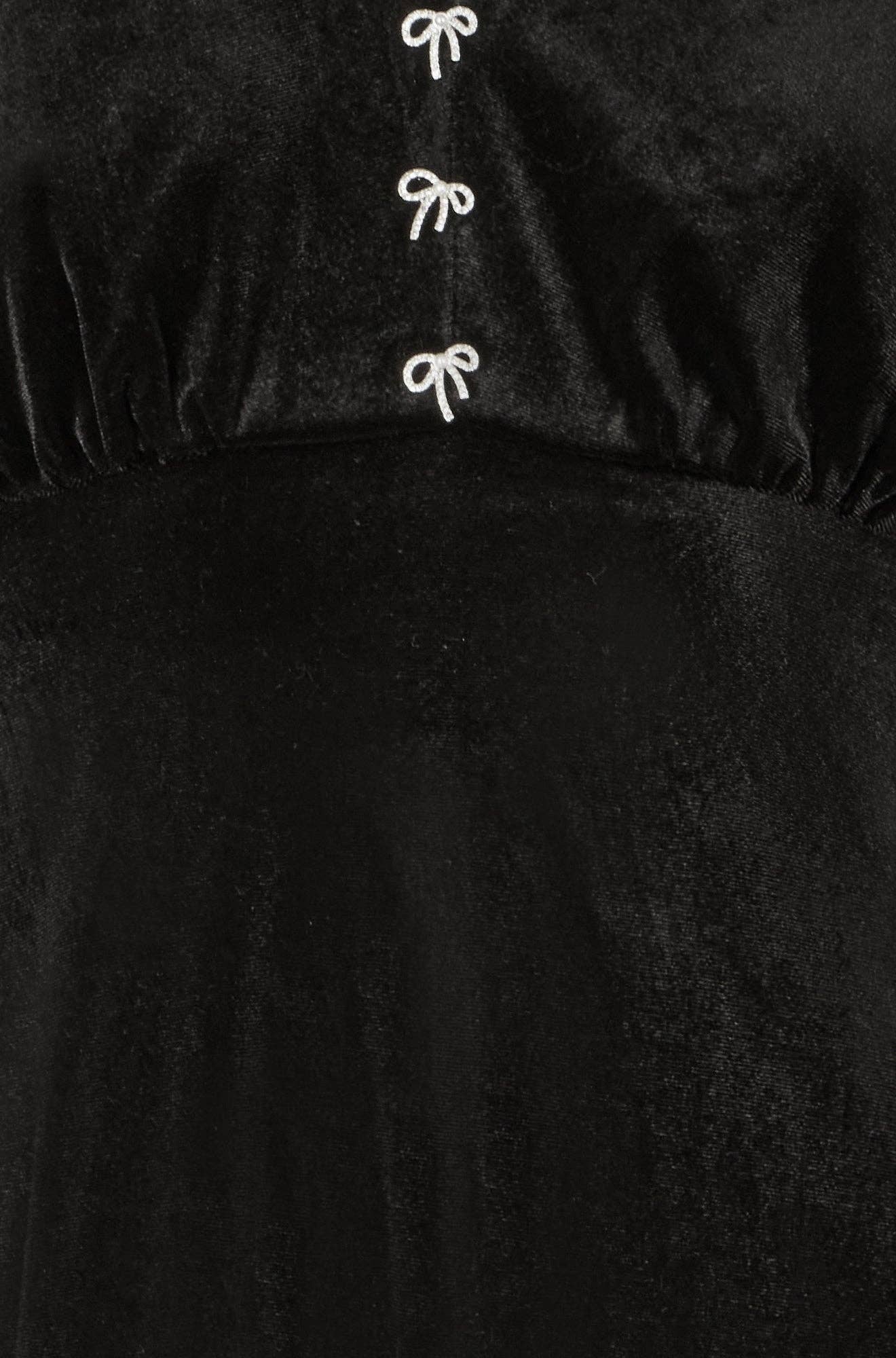 Velvet skater style dress with puff sleeves and diamante bow details adorning the bodice.