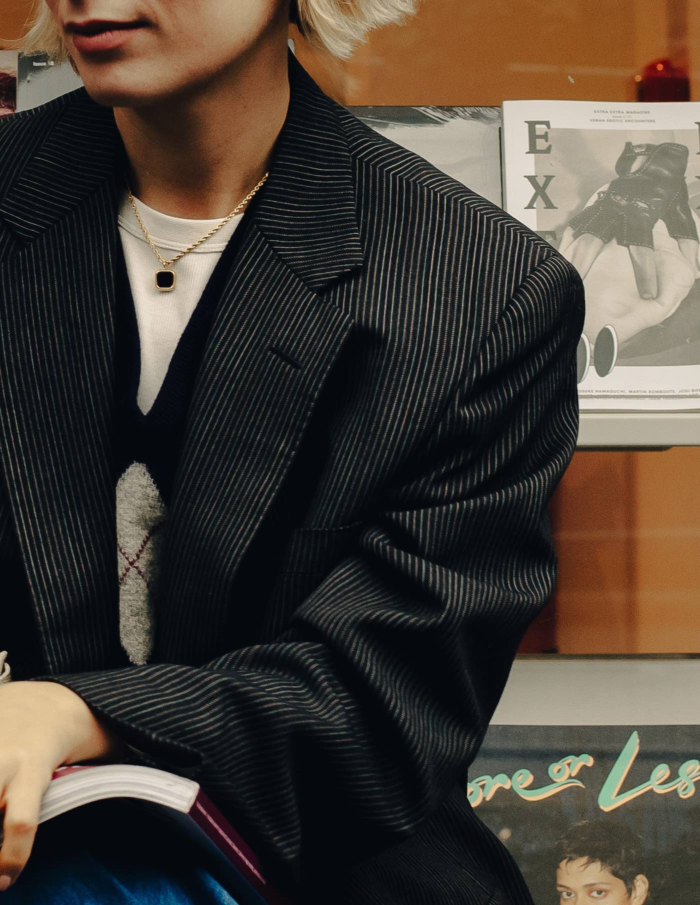 Gold Rope Chain Pendant Necklace with a striking black square pendant, a timeless accessory that seamlessly blends elegance and charm. This stunning piece is a true embodiment of classic sophistication. Its intricate rope twist design adds a touch of texture and visual interest, making it a captivating focal point for any outfit.