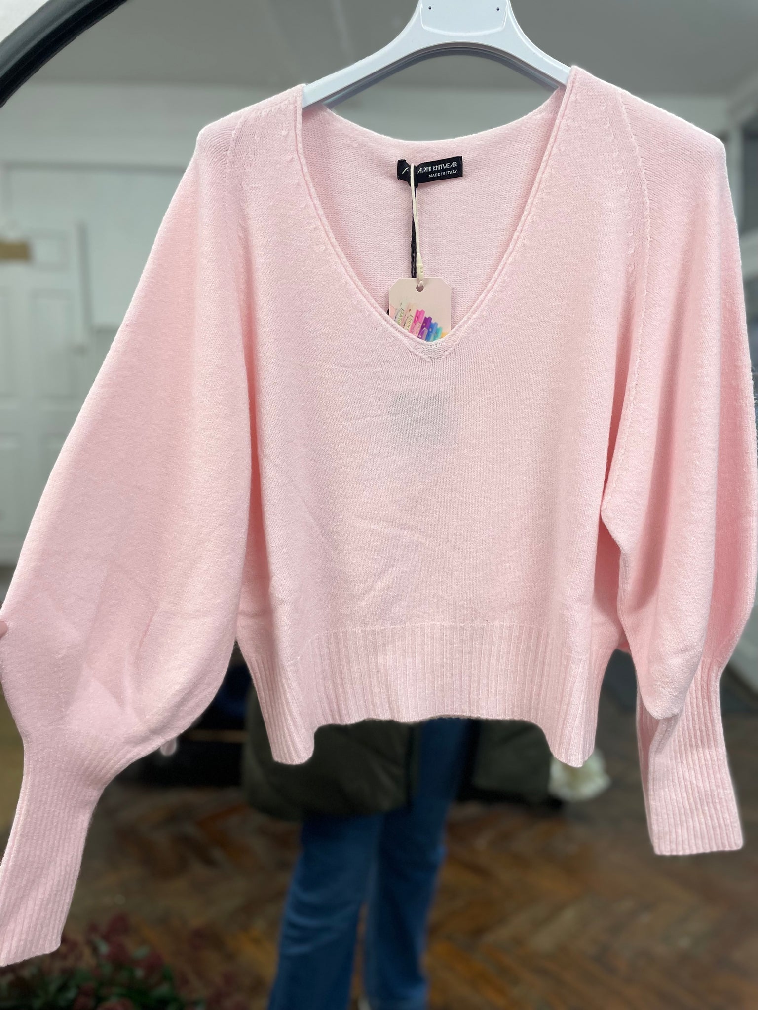 Poppy Balloon Sleeve V Neck Jumper Pale Pink