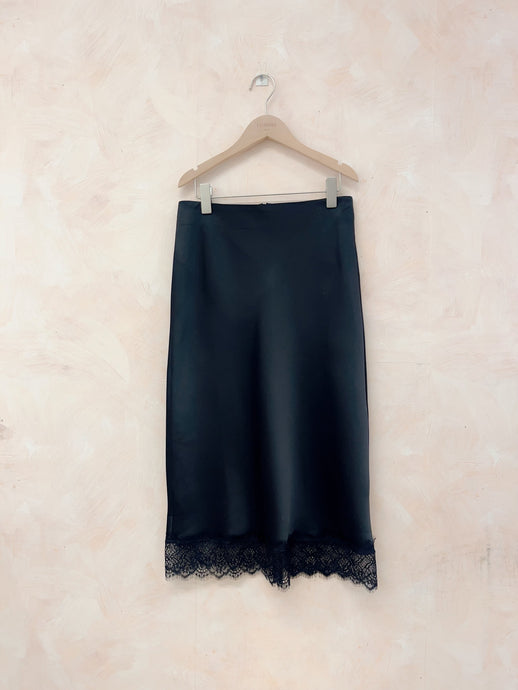 • Shea Satin & Lace Trim Skirt Pencil Black
