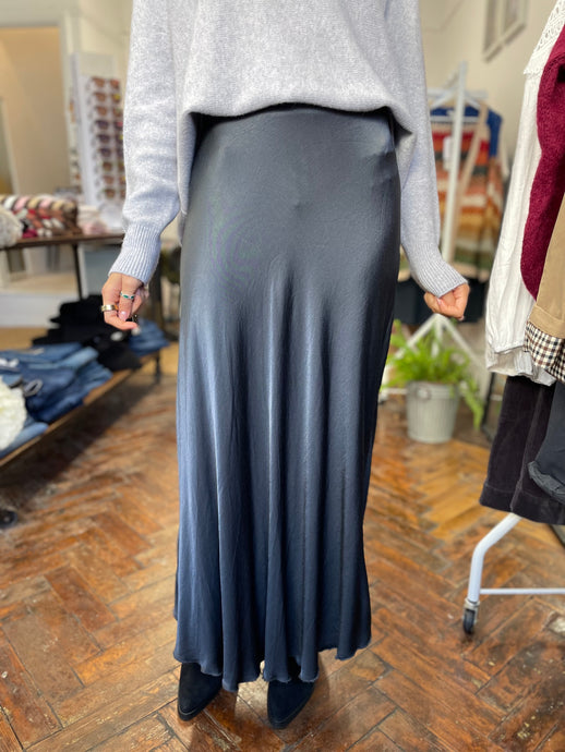 • Kat Bias Cut Satin Leopard Skirt Taupe
