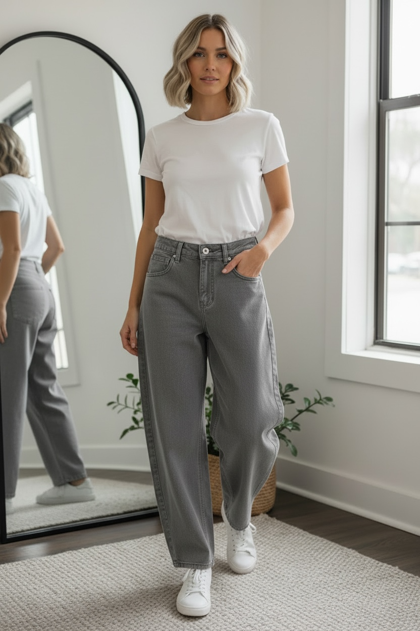 Brielle Stretch Barrel Leg Trouser Grey