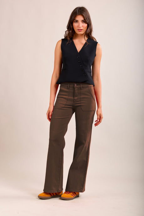 Gloria Patch Pocket Stretch Wide Leg Chocolate