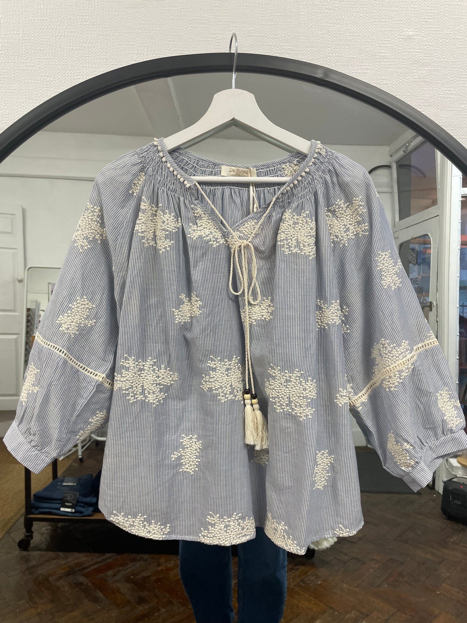 Blossom Pinstripe Embroidered Blouse
