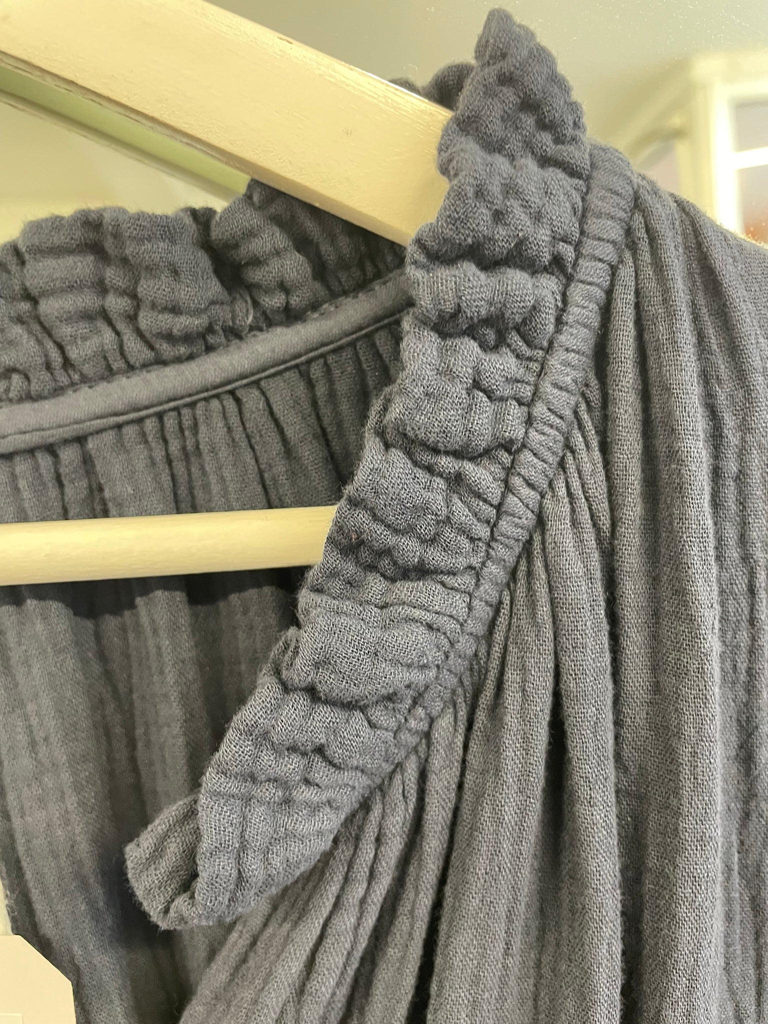 Cheesecloth dress with frill neck detail