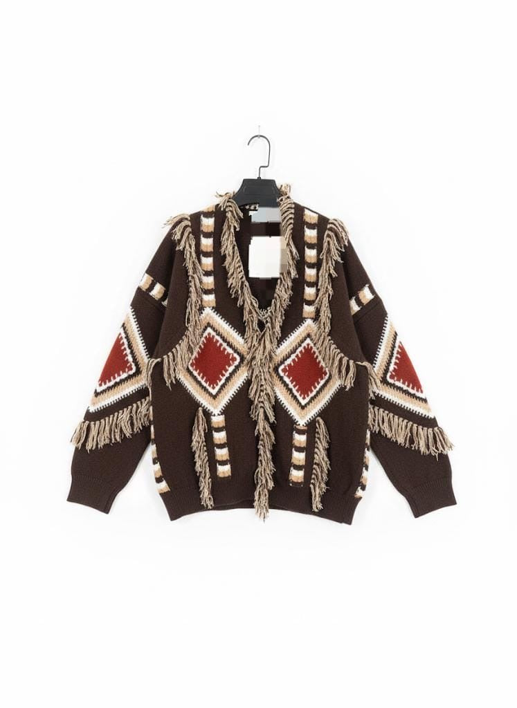 Diamond pattern cardigan with fringed edge