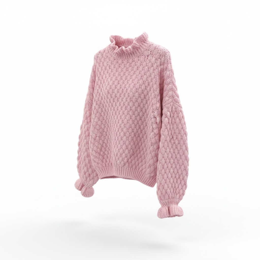 Esme Frill Collar Textured Knit Powder Pink