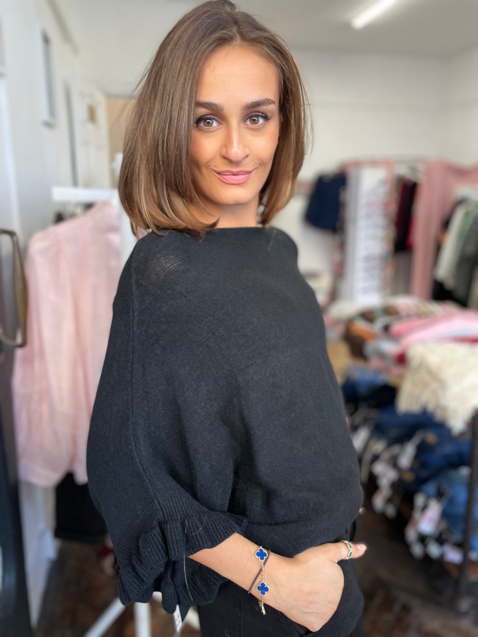 Lightweight batwing jumper with frill cuff