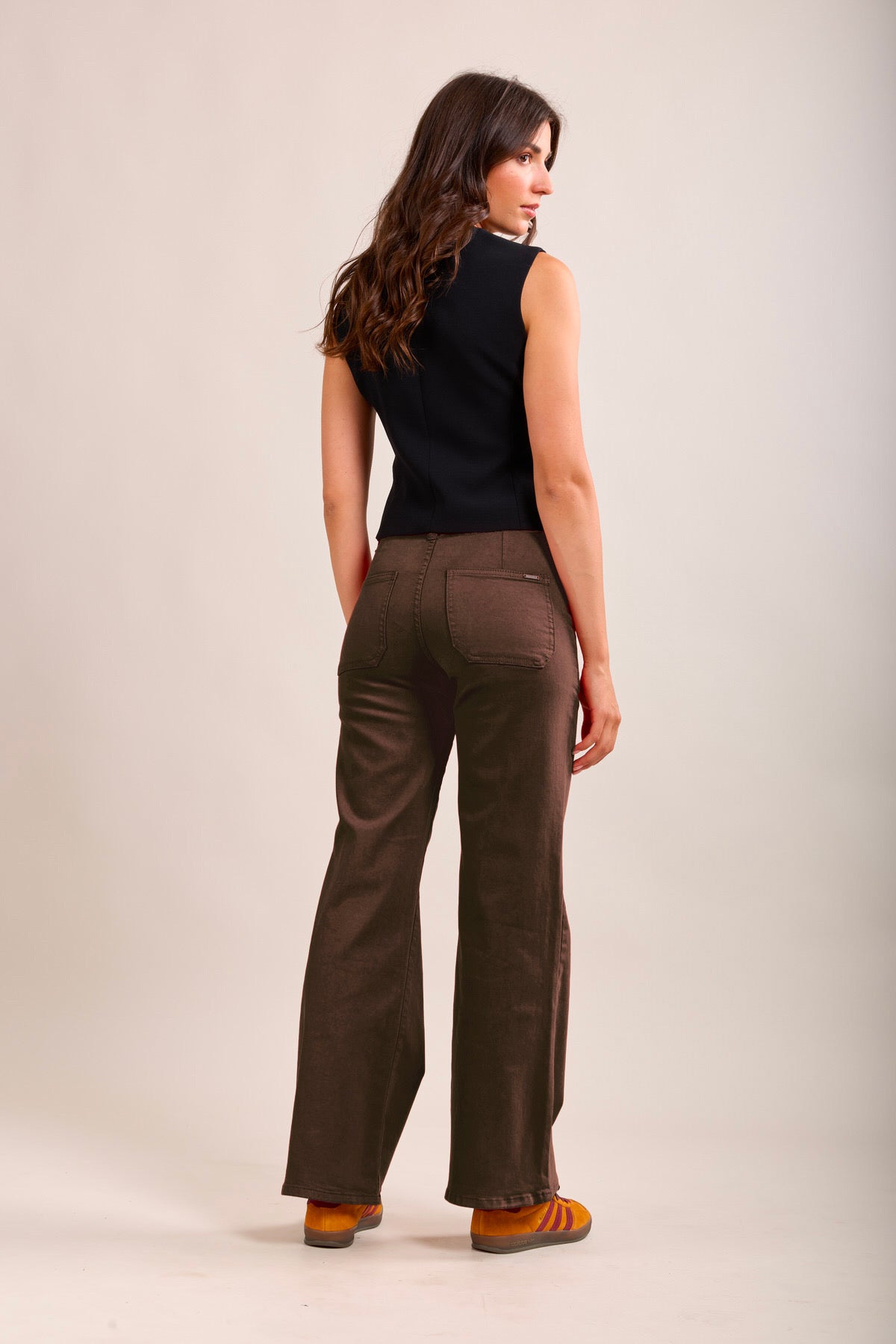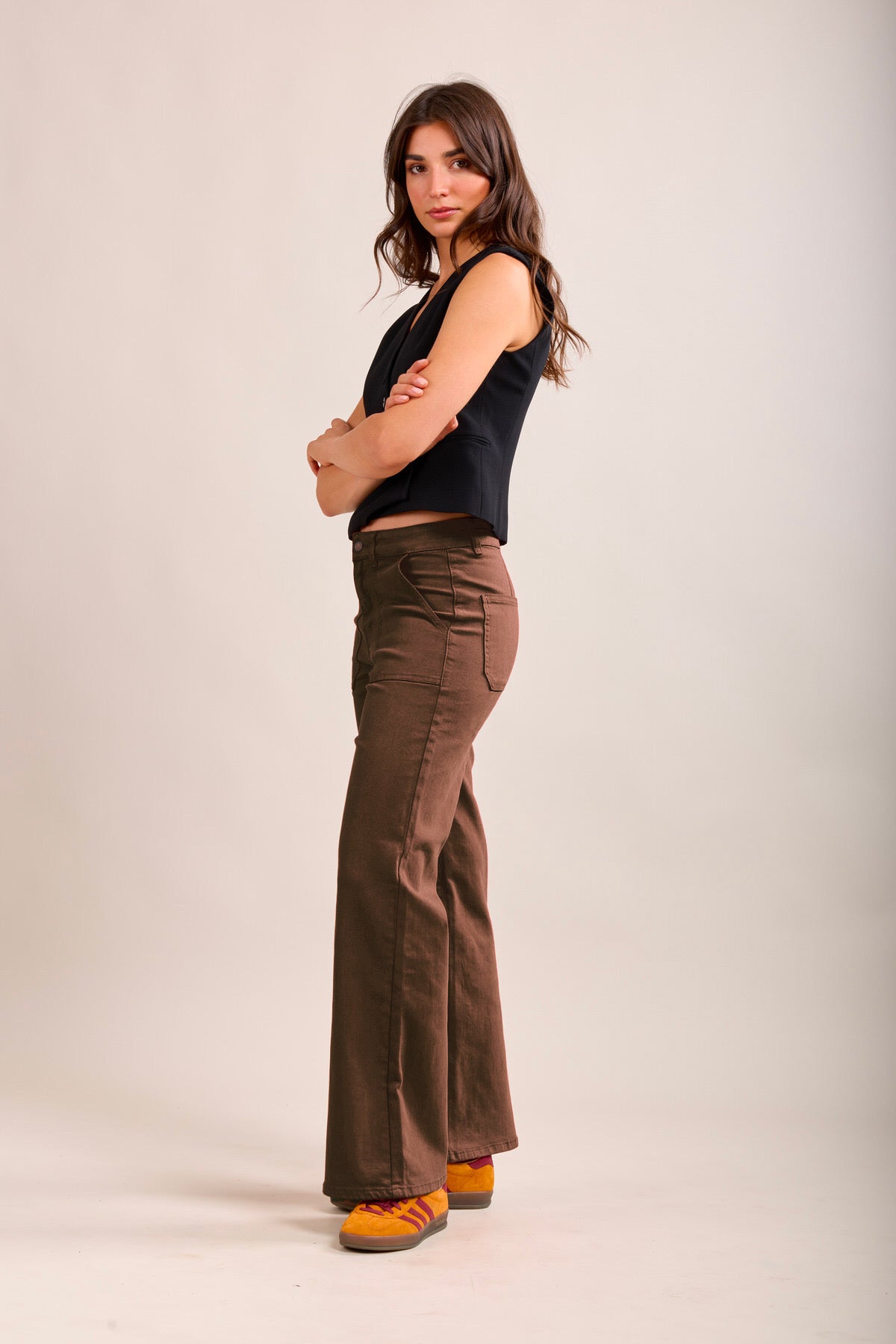 Gloria Patch Pocket Stretch Wide Leg Chocolate