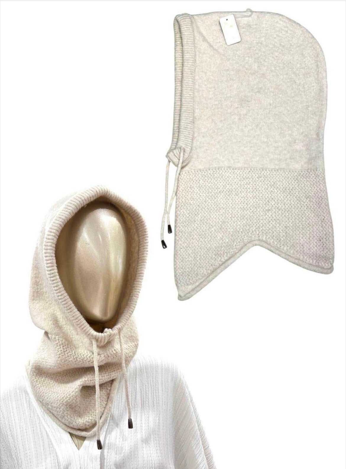 Knitted Balaclava Hood Beige