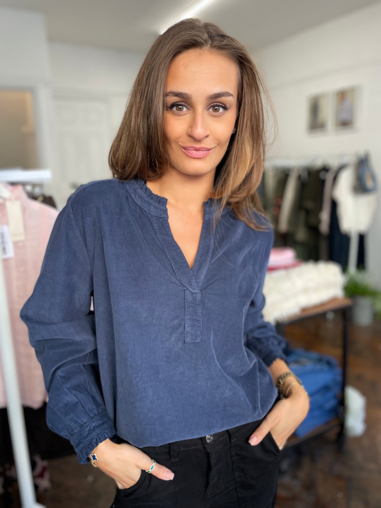Nola Frill Collar Needle Corduroy Shirt Navy