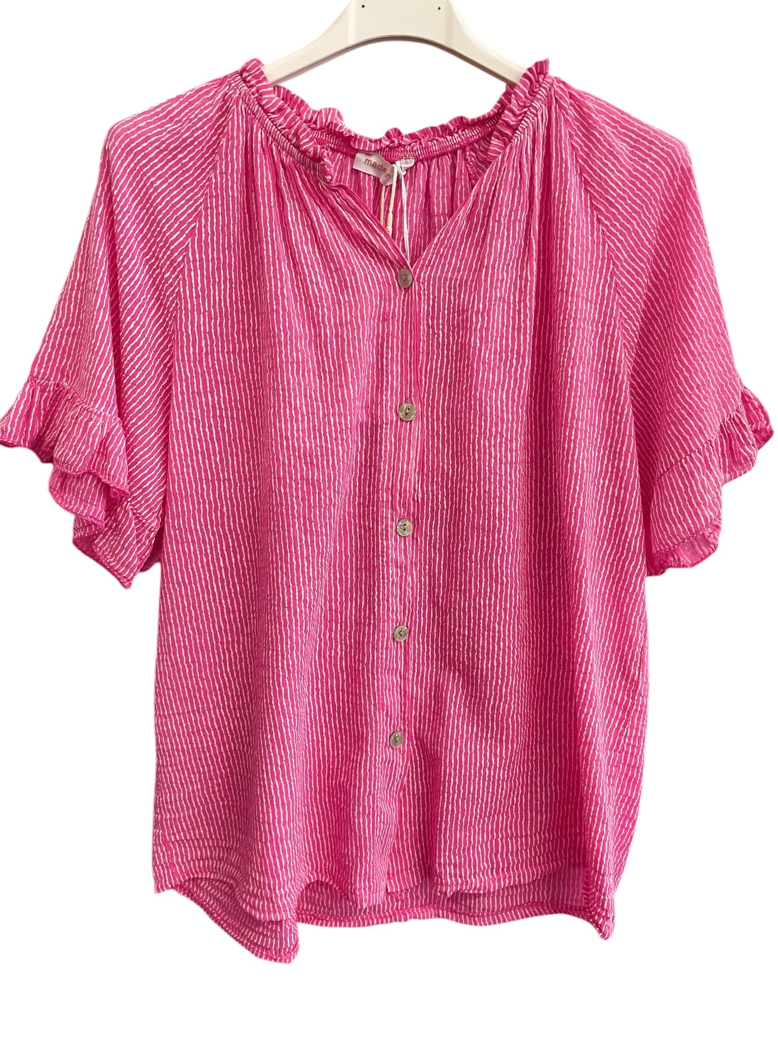 Valencia Stripe Voile Short Sleeve Pink